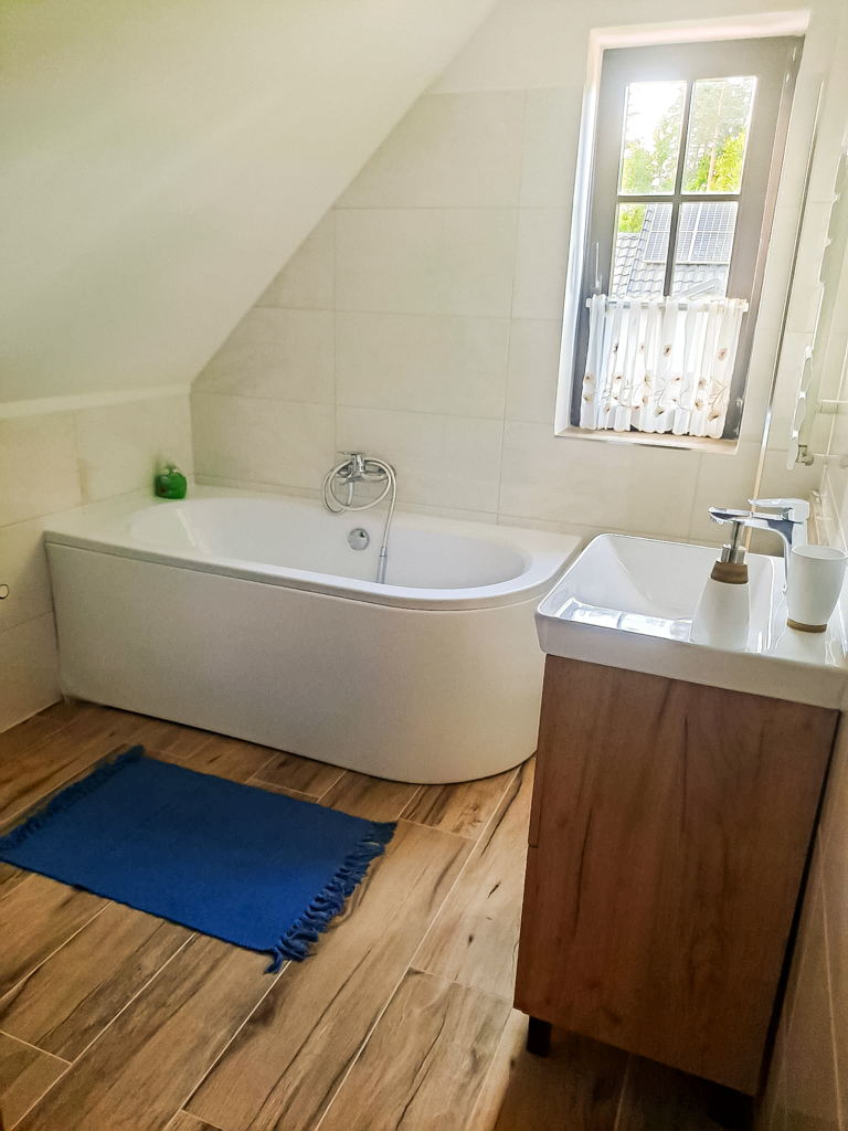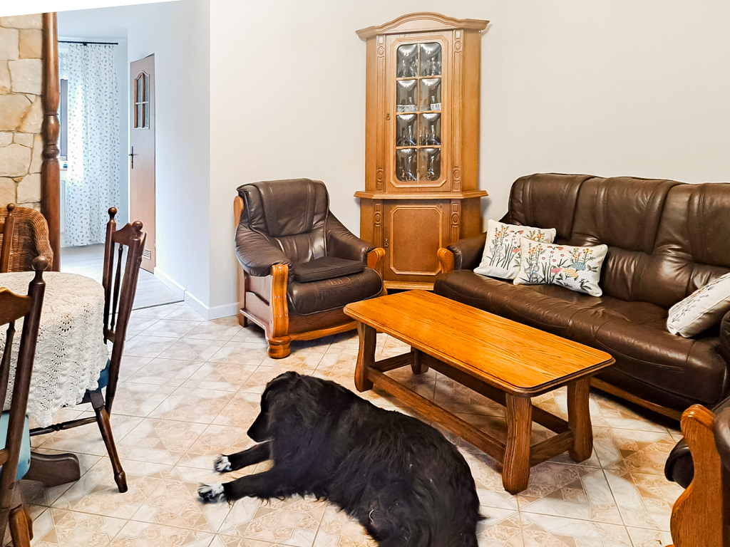 W naszej agroturystyce znajduje się salon z kominkiem , w pełni wyposażona kuchnia, 2 łazienki, 4 sypialnie, taras.